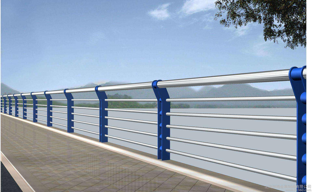 橋梁河道鏡光不銹鋼復合管護欄 1050*50mm 藍色